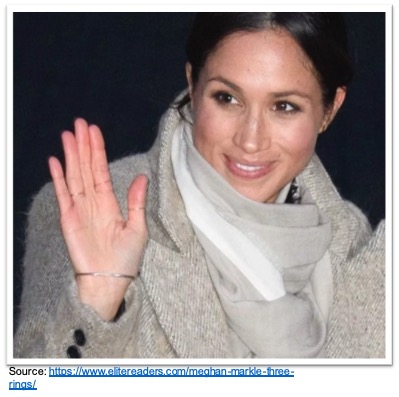 大拇指代表著我們的動力,意志力以及自我控制的能力。透過大拇指我們可以了解到我們的自我控制力以及我們是否想要掌控外在環境及周邊的人,所以喜歡戴戒指在大拇指的人一般都是在外喜歡擔任團體中的領導者;在內則可能是個控制欲很強的配偶。公爵夫人梅根在她右手的大拇指上戴著戒指,透露出她任性及頑固的氣質;亦即儘管外界或身邊提出有建設性的建議,她仍然會依照自己的方式做事。